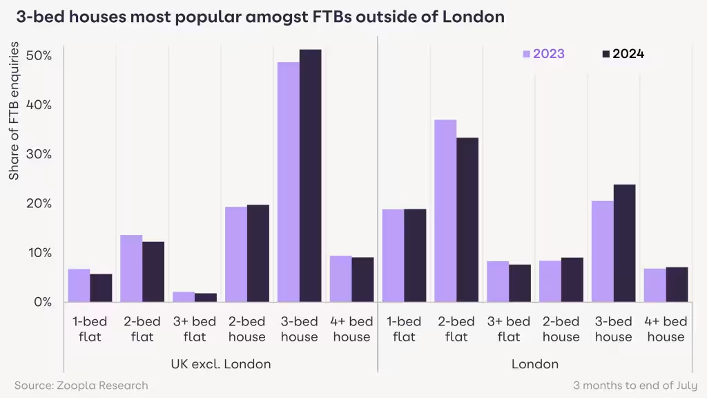 倫敦以外的一半首次購屋者希望購買三房房屋。