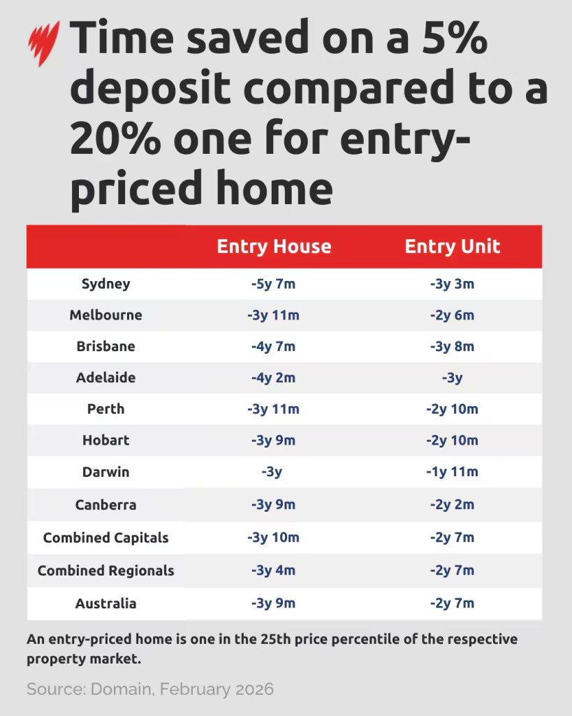 Domain估計使用5%首付計劃將購買壹套住房所需的攢錢時間縮短了近4年。
