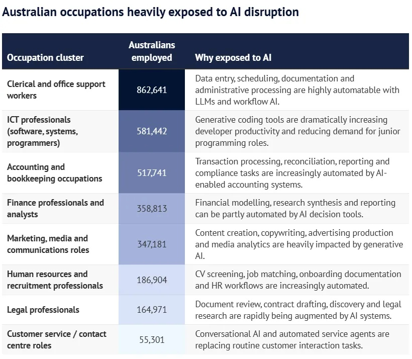 數據顯示,從2020年到2025年,科技相關崗位壹直是澳洲增長最快的職業之壹。但根據美國AI公司Anthropic發布的最新報告,這些崗位恰恰也是最容易受到AI沖擊的。