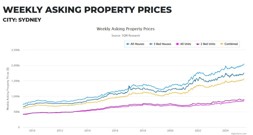 如下圖所示,雪梨房價在 SQM 研究列出的整個 14 年期間一直穩步增長,除了 2019 年左右出現小幅下跌以及 2022 年利率開始上升時再次出現下跌