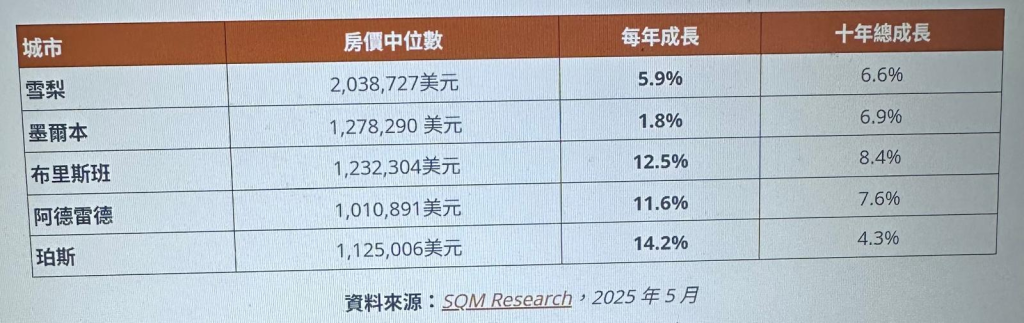 珀斯、布里斯班和阿德萊德等一些城市由於州際移民和經濟負擔能力而實現了更強勁的增長,而墨爾本的房地產則因當地經濟挑戰而陷入低迷。