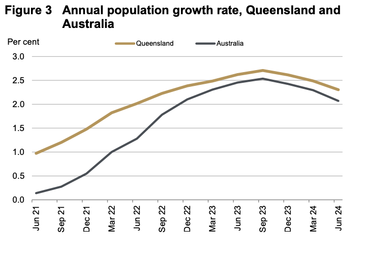 截至 2024 年 6 月 30 日的 12 個月內,昆士蘭州的人口成長率為 2.3%,高於全國平均(2.1%)。