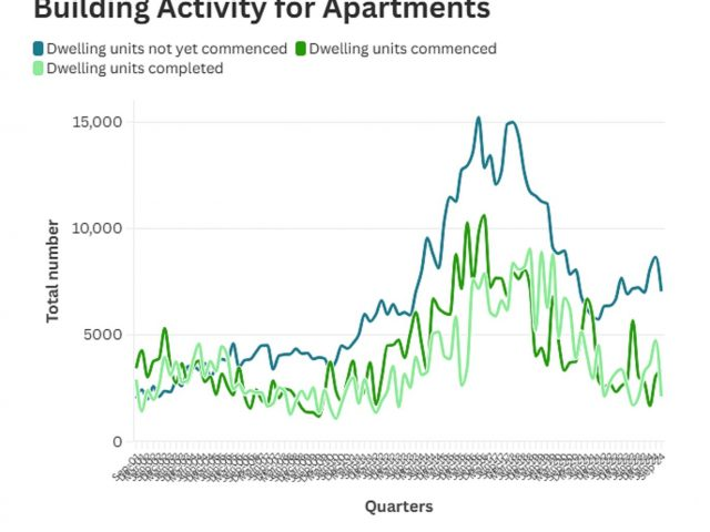 根據ABS數據,自2018年以來,新州每季度完工的住宅公寓數量持續下降。由於建築成本依然高昂,完工房源的供應預計難以跟上市場需求。