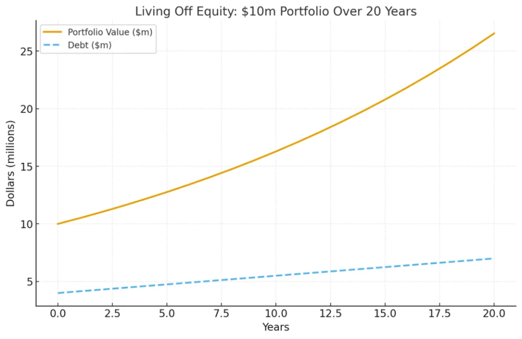 透過謹慎地利用股權,我得以保留高成長資產,避免觸發資本利得稅,並且仍然能夠產生我所需的收入