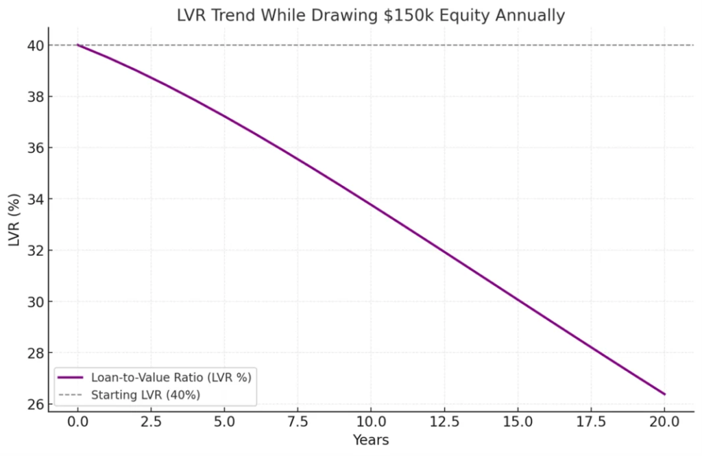 因此,在這個例子中,您每年將享受 30 萬美元的生活收入——15 萬美元來自租金,15 萬美元來自股權——同時保留您所有的高成長投資組合。